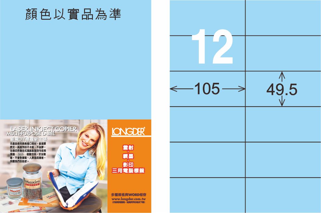 商品名稱:龍德 LD-832-B-C A4三用電腦標籤 淺藍色 / 包