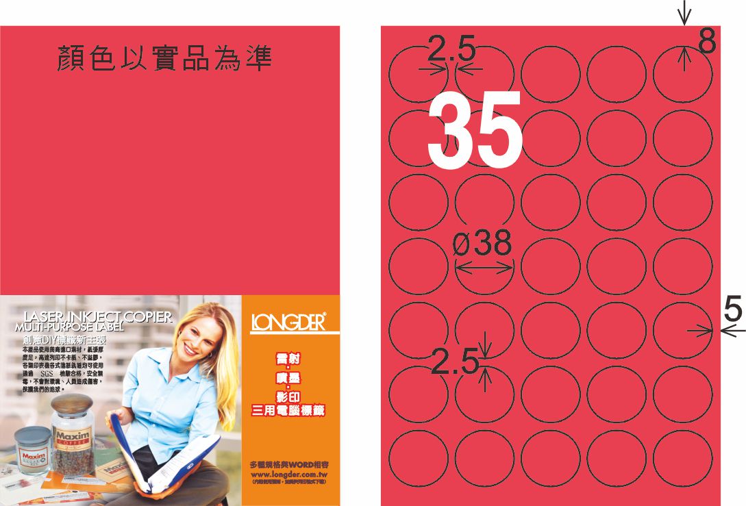 商品名稱:龍德 LD-823-FR-C A4雷射影印標籤 螢光紅 / 包