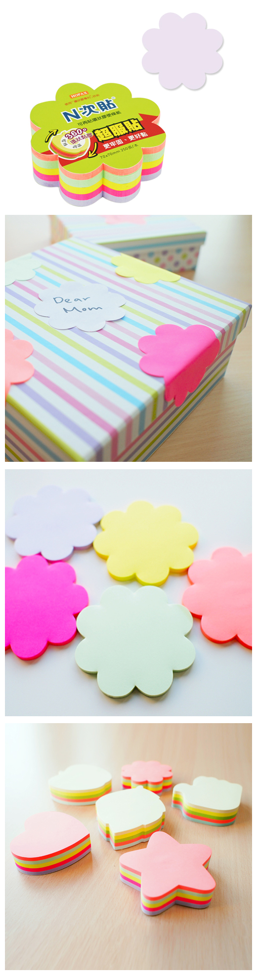 四邊皆可隨意撕取不受方向限制,易撕好黏書寫流暢,多款趣味造型,