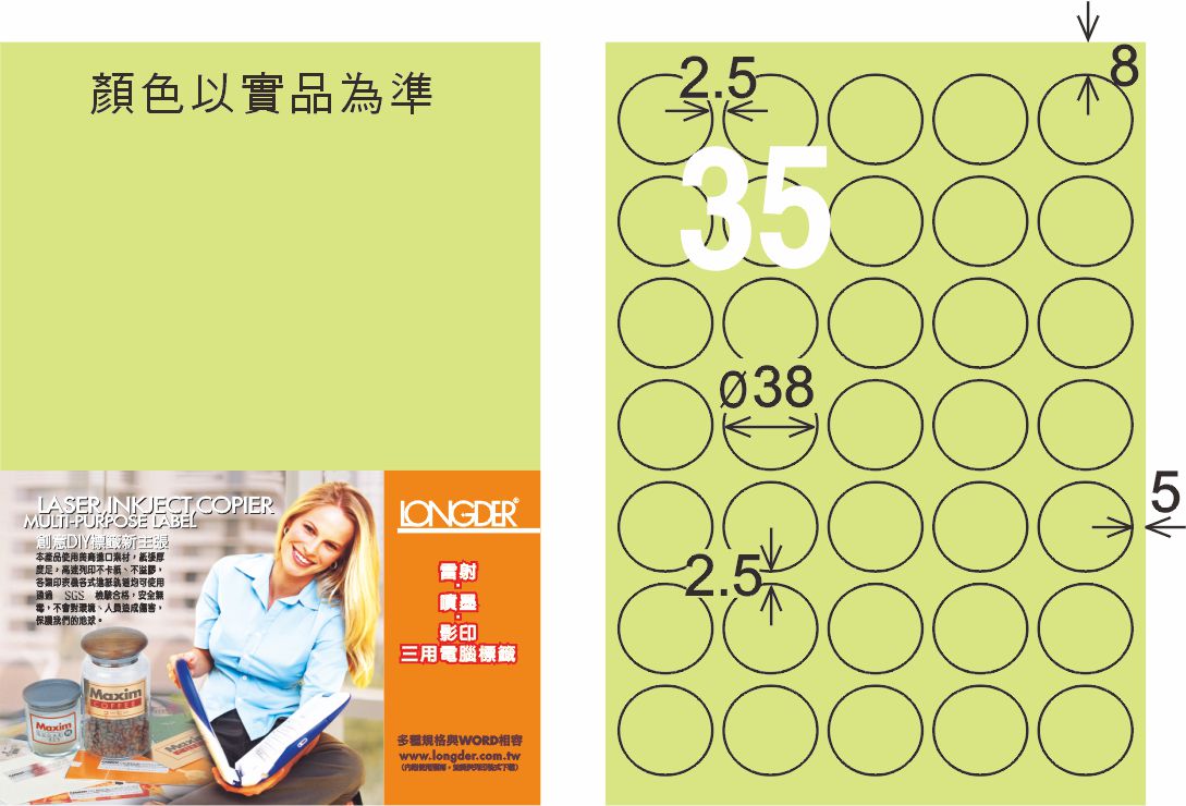 商品名稱:龍德 LD-823-G-C A4三用電腦標籤 淺綠色 / 包