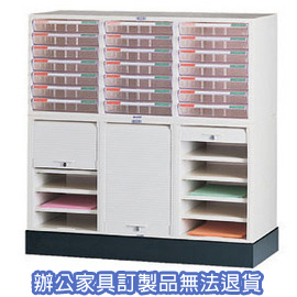 ◎品名: 捲門式公文櫃系列 B4-8307+CP-6305B+CP-03 三排腳座 ◎規格:寬90x深40x高84+9 (Cm) ◎特色:三度空間的運用,利用向上空間自由組合,不受平面空間大小影響!◎備註:全省皆可配送,購買前請先來電洽詢存貨狀況,謝謝!