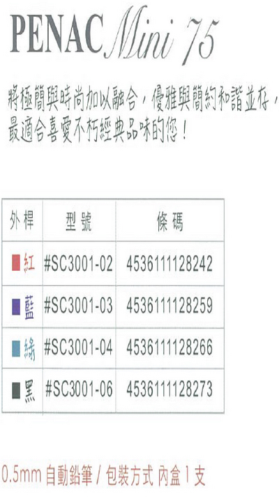 >O.B. PENAC Mini75自動鉛筆 0.5mm (黑 / 1支) OB#SC3001-06
