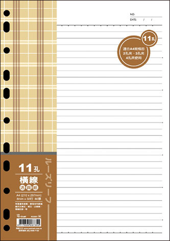 商品名稱:博崴 AO3561 A4 11孔布格紋活頁紙-橫線 -5包入 / 袋商品單位:5包入 / 袋商品型號:AO3561商品規格介紹:◎尺寸:210W x 297H◎入數:80張(包)◎適用於:A4/2孔夾、3孔夾、4孔夾◎橫線:8 mm ruled line廠商代號:ARA責任代號:HYC