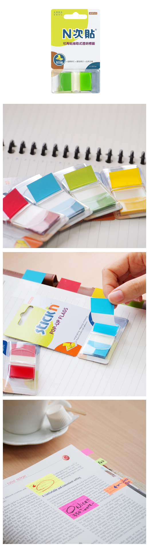 黏在桌上,分類文件更順手; 黏在記事本,攜帶更便利!