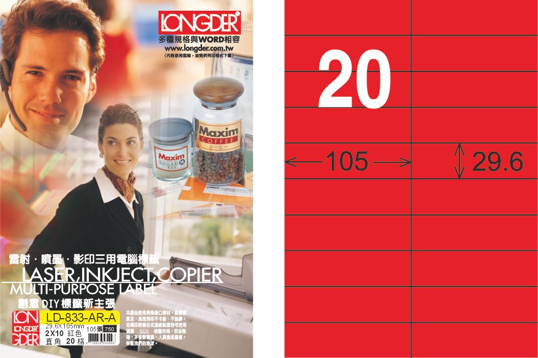 商品名稱:龍德 LD-833-AR-A A4雷射影印標籤 紅銅版 / 盒