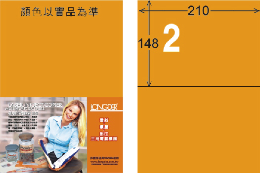 商品名稱:龍德 LD-804-FO-C A4雷射影印標籤 螢光橘 / 包