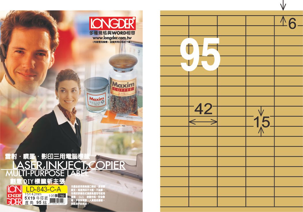 商品名稱:龍德 LD-843-C-A A4三用電腦標籤 牛皮紙 / 盒