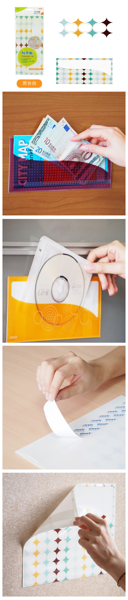 ◎品 名:N次貼 67004 可再貼收納口袋(票券袋),彩圈 105x213mm