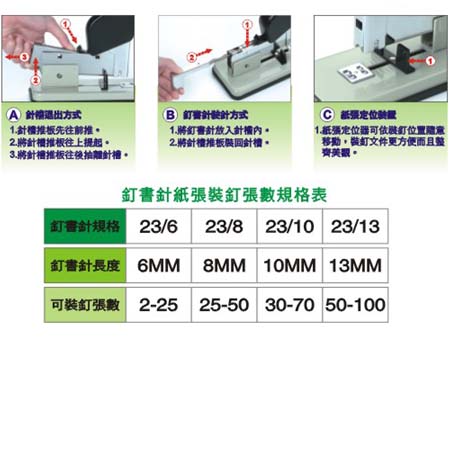 適用市面長度6mm ~13mm各種規格的釘書針。