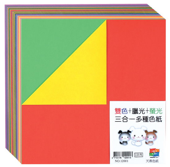 >三合一螢光/腊光/雙色色紙 NO.12001 (24K) 5只/包