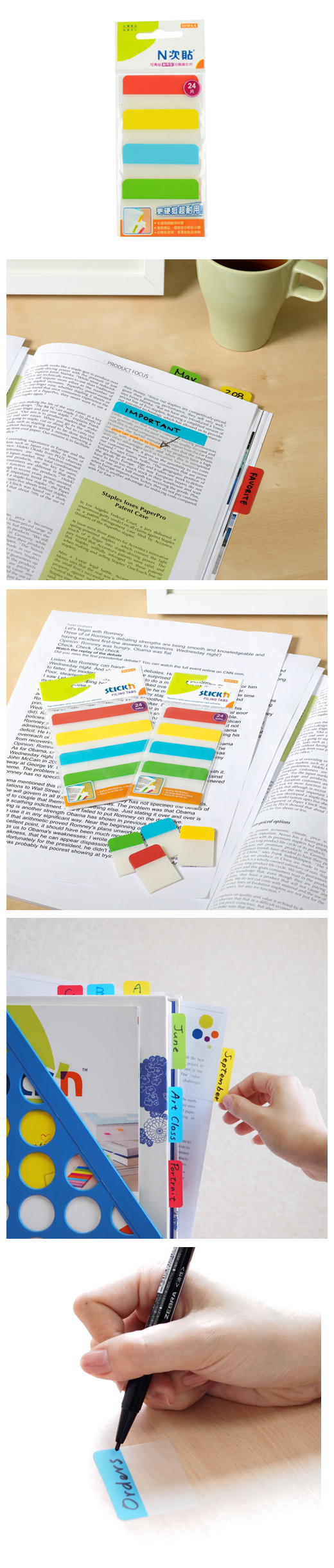 ◎品 名:N次貼 66536 耐用型可再貼分類索引片 38x51mm◎單 位:24片/4色/袋◎型 號:66536 ◎規 格:38x51mm◎顏 色:紅/黃/藍/綠◎特 色:更硬挺更耐用,檔案歸類的好幫手! 不只好黏更好寫,適合大量文件歸檔可長期使用!