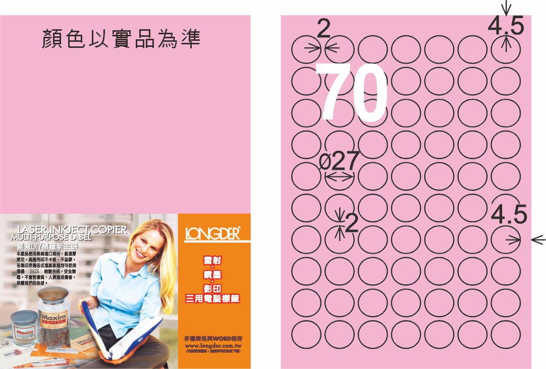商品名稱:龍德 LD-822-R-C A4三用電腦標籤 粉紅色 / 包