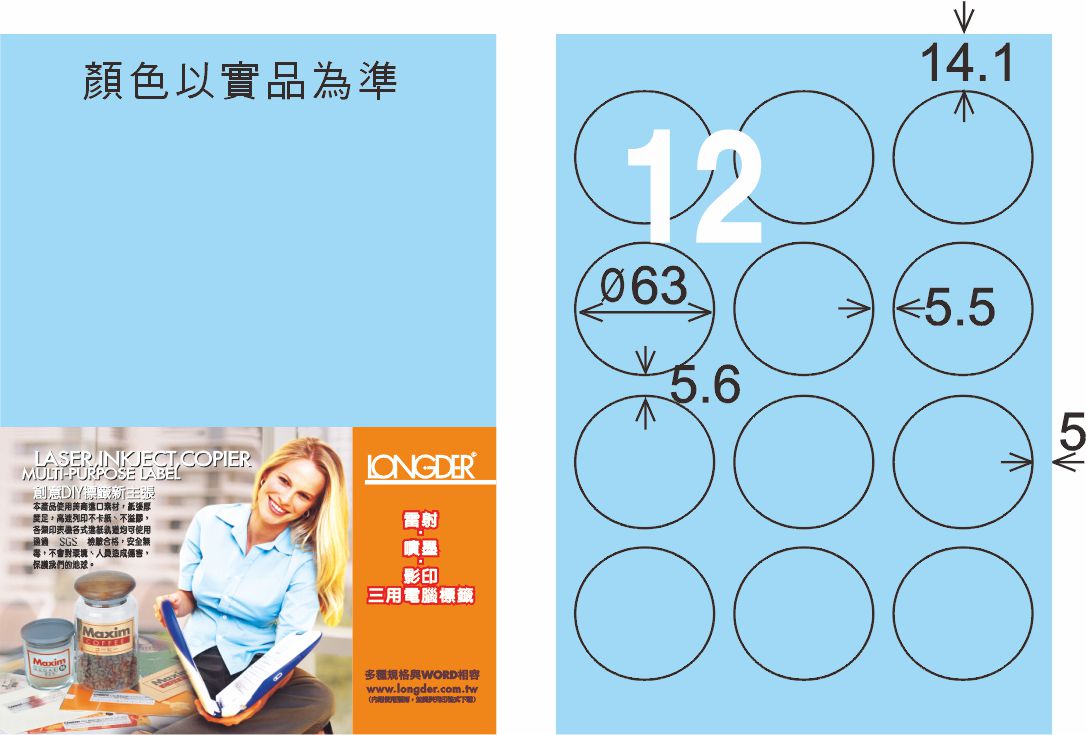 商品名稱:龍德 LD-821-B-C A4三用電腦標籤 淺藍色 / 包
