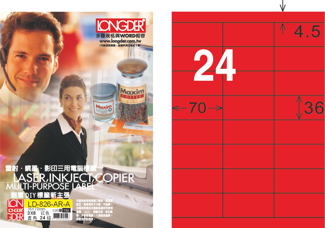 商品名稱:龍德 LD-826-AR-A A4雷射影印標籤 紅銅版 / 盒