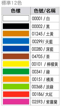 (白/黑/土黃/天藍/深藍/茶/檸檬黃/綠/橘黃/淡綠/大紅/紫羅蘭色)