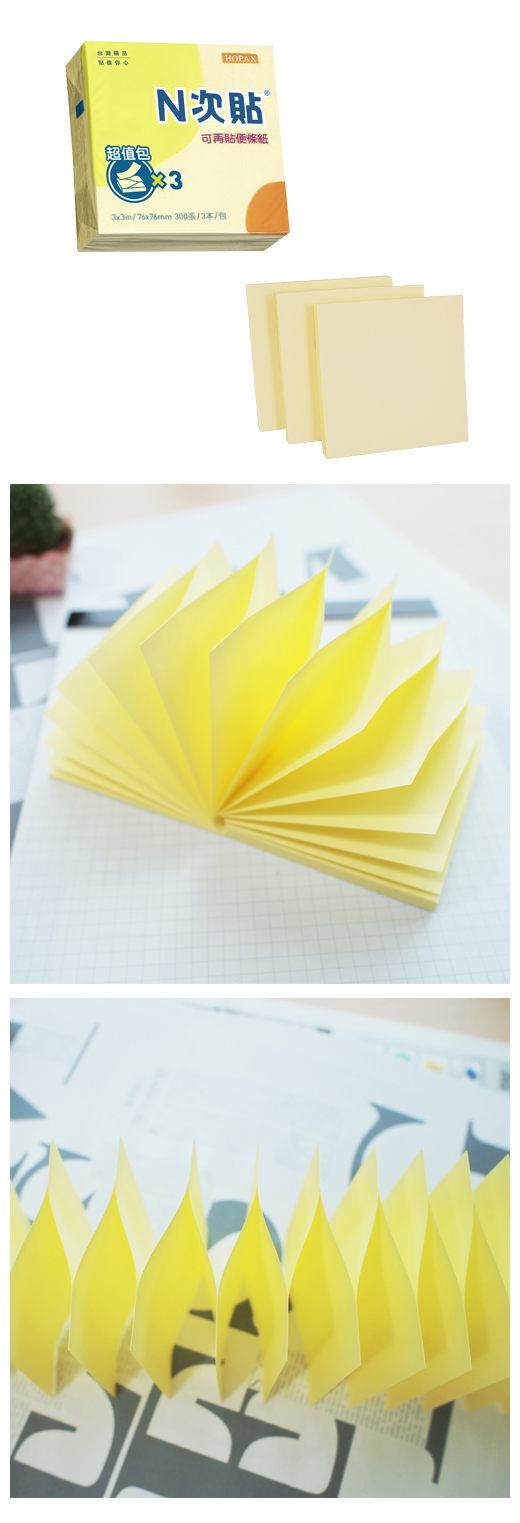◎品 名:N次貼 61007 超值包可再貼便條紙 3"x3"(76x76mm),黃◎單 位:300張/3本◎型 號:61007◎規 格:3"x3"(76x76mm)◎顏 色:黃◎特 色:抽取式補充包,最暢銷顏色,最實用款式,一本三包,經濟實惠,超值首選!
