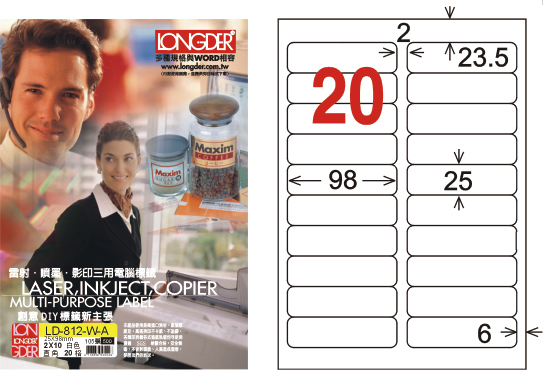 商品名稱:龍德 LD-812-W-A A4三用電腦標籤 白色 / 盒