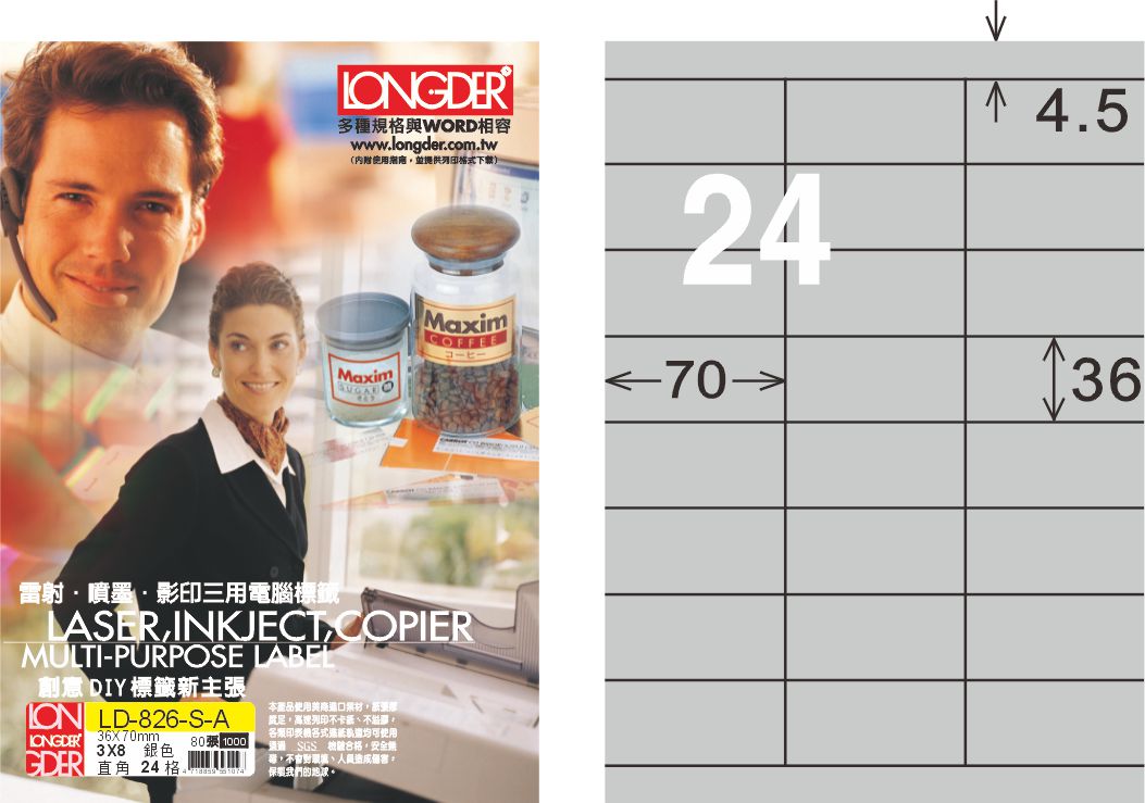 商品名稱:龍德 LD-826-S-A A4雷射影印標籤 銀色 / 盒
