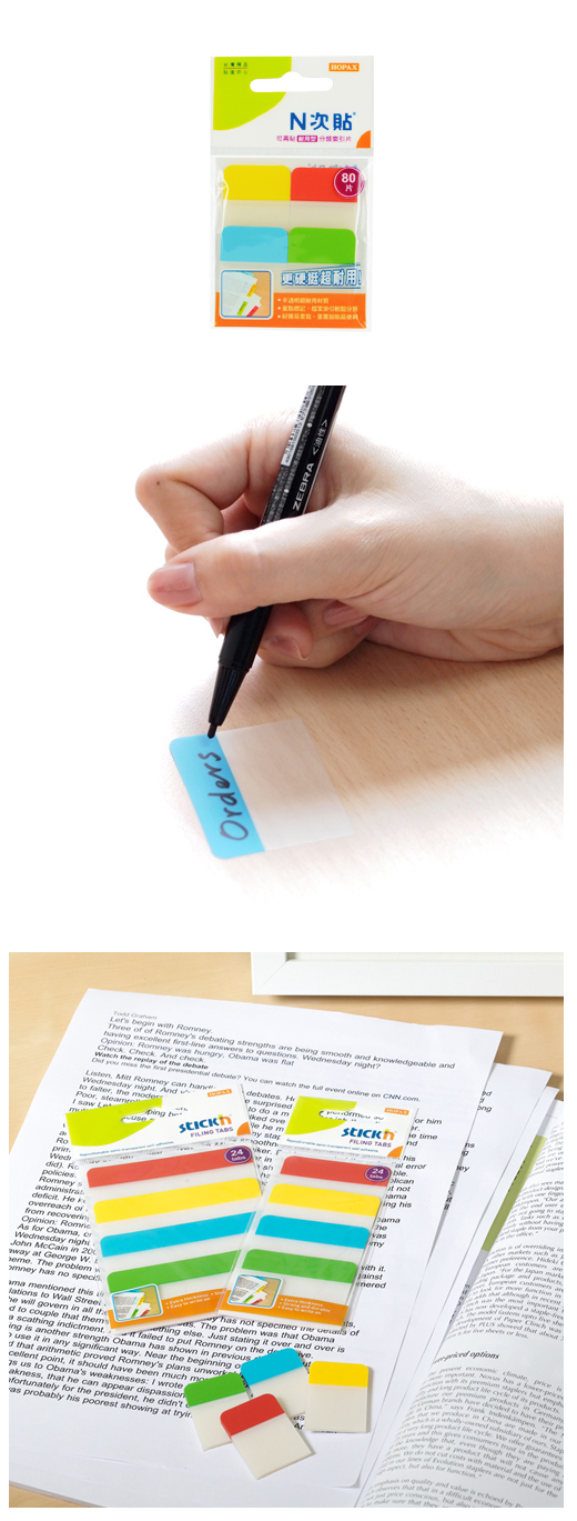◎品 名:N次貼 66535 耐用型可再貼分類索引片 38x25mm◎單 位:80片/4色/袋◎型 號:66535 ◎規 格:38x25mm◎顏 色:紅/黃/藍/綠◎特 色:更硬挺更耐用,檔案歸類的好幫手! 不只好黏更好寫,適合大量文件歸檔可長期使用!