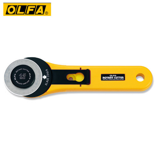 商品簡介:●輪轉式割布(拼布)刀(直徑45mm)。用於布、膠片、薄紙。●左右手皆適用 ,使用OLFA 直徑45m/m圓形刀片 RB45-1、RB45-10 。