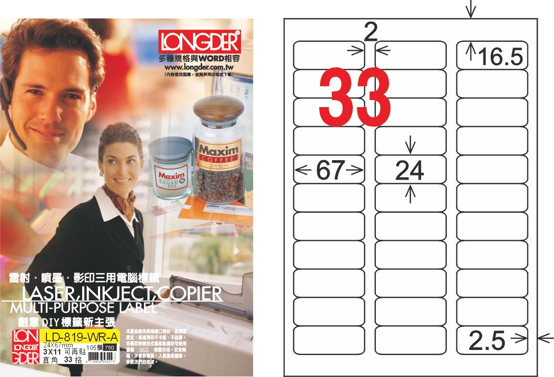 商品名稱:龍德 LD-819-WR-A A4模造可再貼 白色 / 盒
