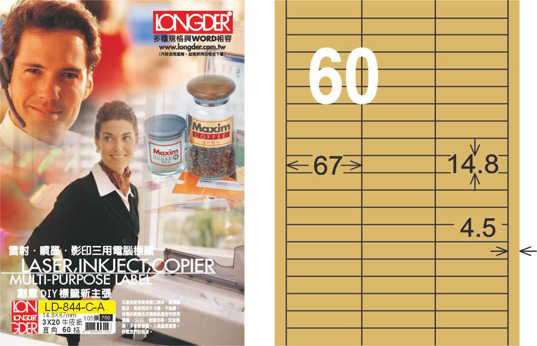 商品名稱:龍德 LD-844-C-A A4三用電腦標籤 牛皮紙 / 盒