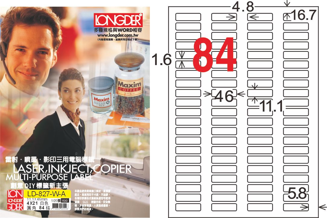 商品名稱:龍德 LD-827-W-A A4三用電腦標籤 白色 / 盒