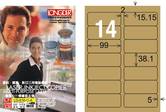 商品名稱:龍德 LD-816-C-A A4三用電腦標籤 牛皮紙 / 盒