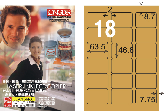 商品名稱:龍德 LD-813-M-A A4雷射影印標籤 金色 / 盒