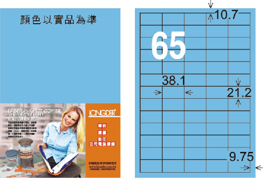 商品名稱:龍德 LD-806-B-C A4三用電腦標籤 淺藍色 / 包