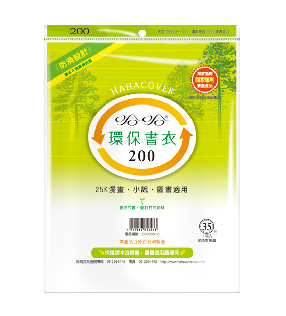 ◎ 品 名:哈哈書套 BBC200 環保書衣 20.2 x 32cm 25K漫畫.小說.圖書適用