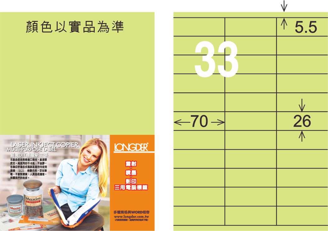 商品名稱:龍德 LD-835-G-C A4三用電腦標籤 淺綠色 / 包