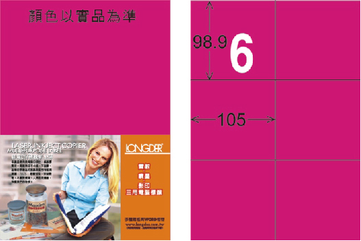 商品名稱:龍德 LD-808-FP-C A4雷射影印標籤 螢光粉紅 / 包