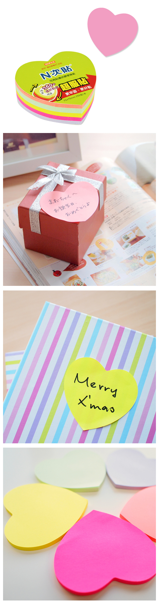 ◎品 名:N次貼 61821 環狀膠-便條磚可再貼便條紙 3”x3”(70x70mm)愛心
