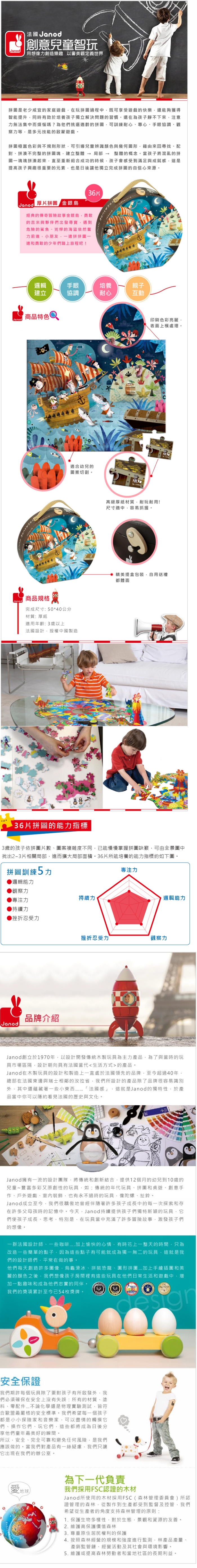 {振昌文具}【請先來電洽詢庫存】【法國Janod】厚片拼圖-金銀島36pcs J02922 /組