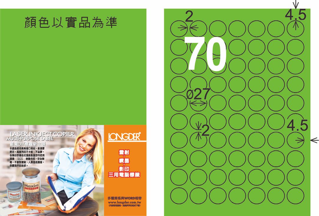 商品名稱:龍德 LD-822-FG-C A4雷射影印標籤 螢光綠 / 包