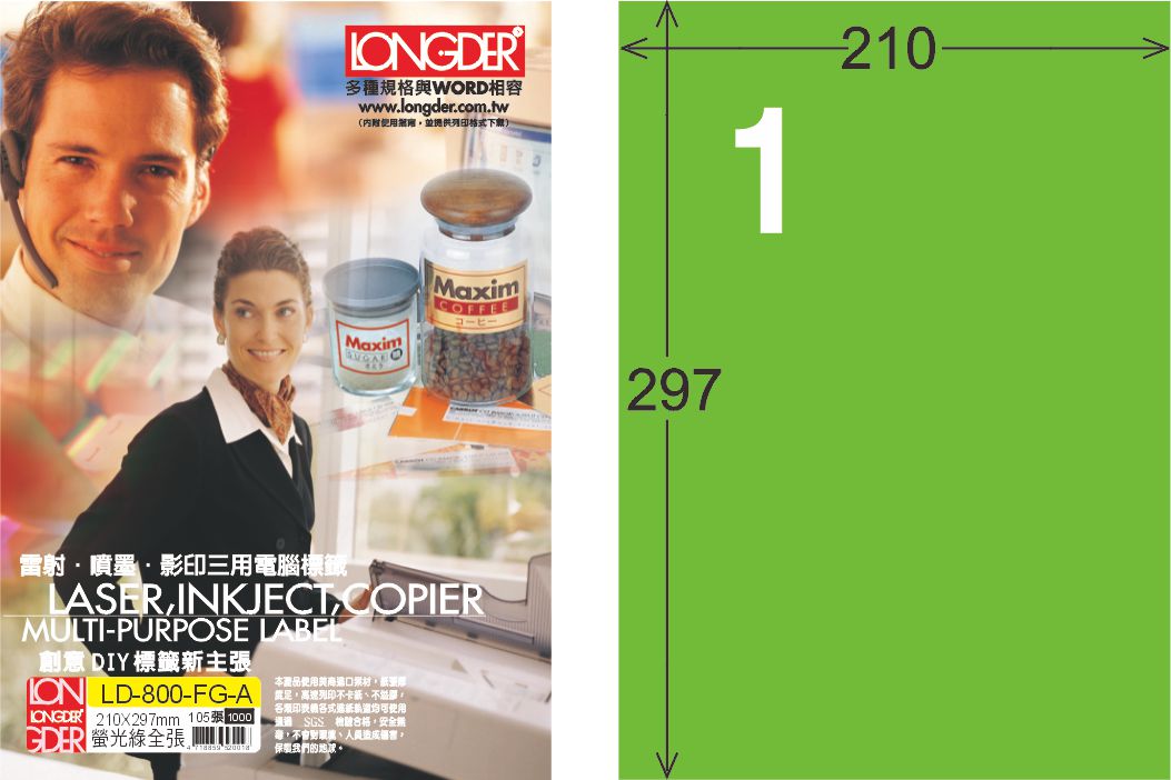 商品名稱:龍德 LD-800-FG-A A4雷射影印標籤 螢光綠 / 盒