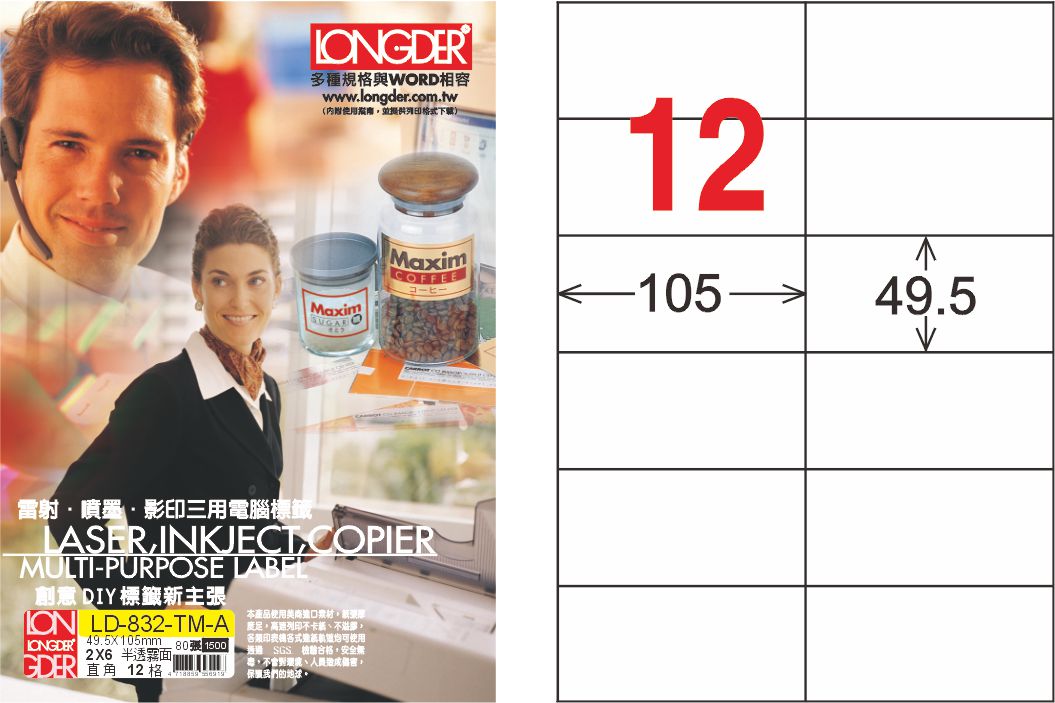 商品名稱:龍德 LD-832-TM-A A4半透明霧面(三用可列印) / 盒
