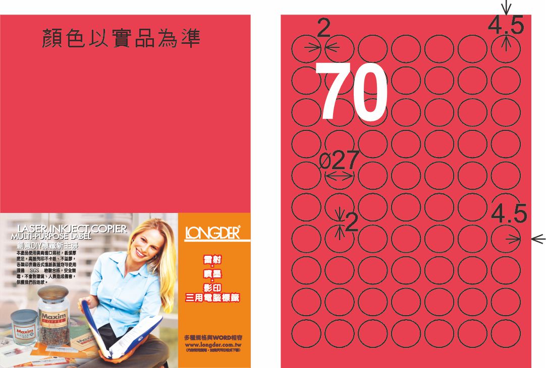 商品名稱:龍德 LD-822-FR-C A4雷射影印標籤 螢光紅 / 包