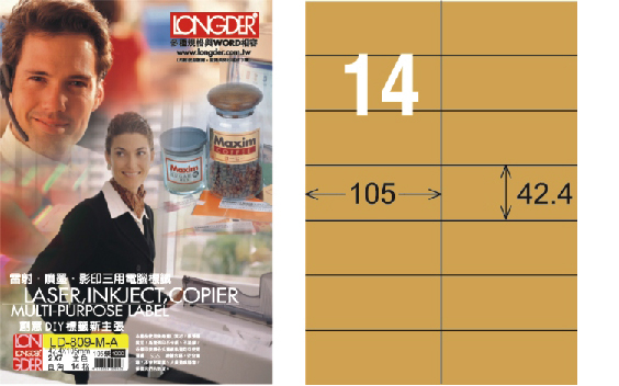 >龍德 LD-809-M-A A4雷射影印標籤 金色 / 盒