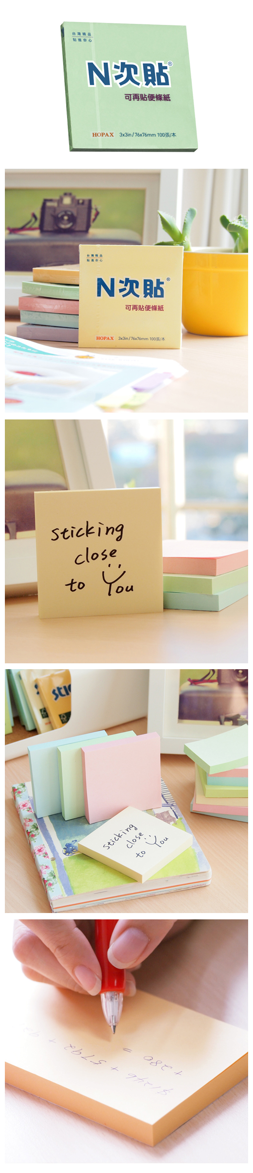 ◎品 名:N次貼 61118 標準型可再貼便條紙 73"x3"(76x76mm),綠◎單 位:100張/本◎型 號:61118◎規 格:3"x3"(76x76mm)◎顏 色:綠◎特 色:N次貼熱銷產品 標記提示輕鬆寫,分類備忘隨手貼 學習、筆記,好黏易撕重覆黏貼最便利!!
