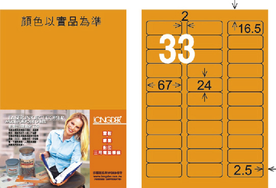 商品名稱:龍德 LD-819-FO-C A4雷射影印標籤 螢光橘 / 包