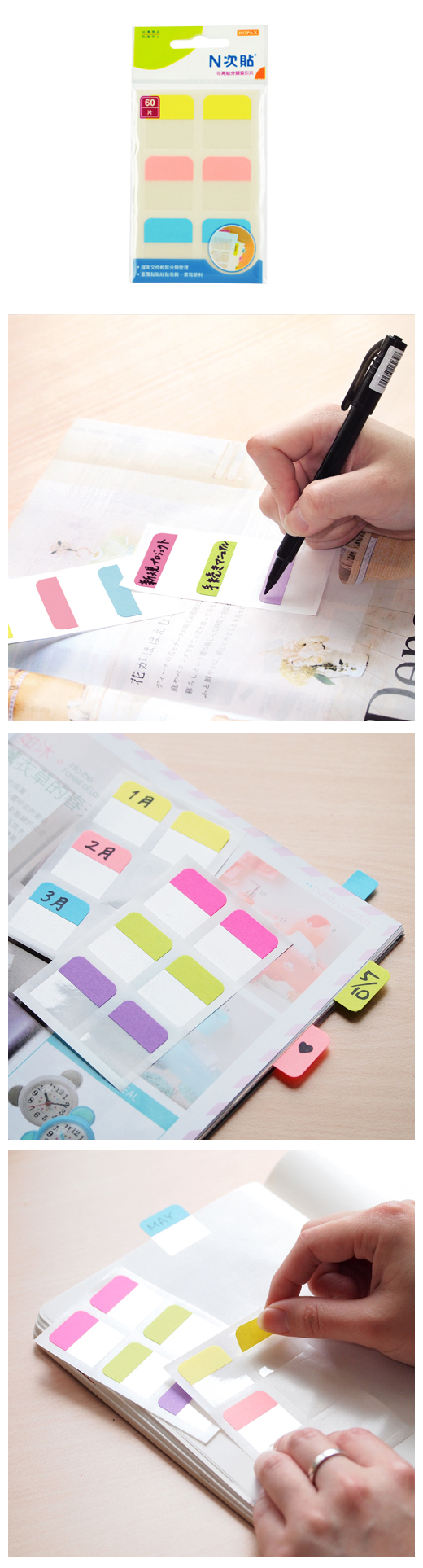 ◎品 名:N次貼 66514 書寫型可再貼分類索引片 28x25mm◎單 位:60片/3色/袋◎型 號:66514◎規 格:28x25mm◎顏 色:黃/粉紅/藍◎特 色:紙張標頭各種筆都好寫,好撕好黏不留痕跡,檔案文件輕鬆收!