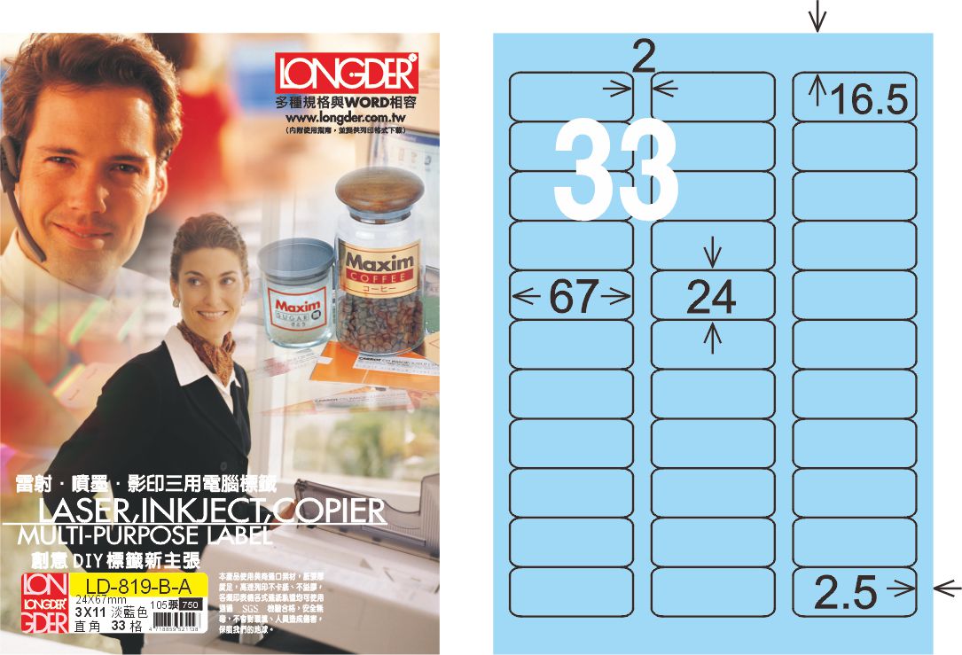 商品名稱:龍德 LD-819-B-A A4三用電腦標籤 淺藍色 / 盒