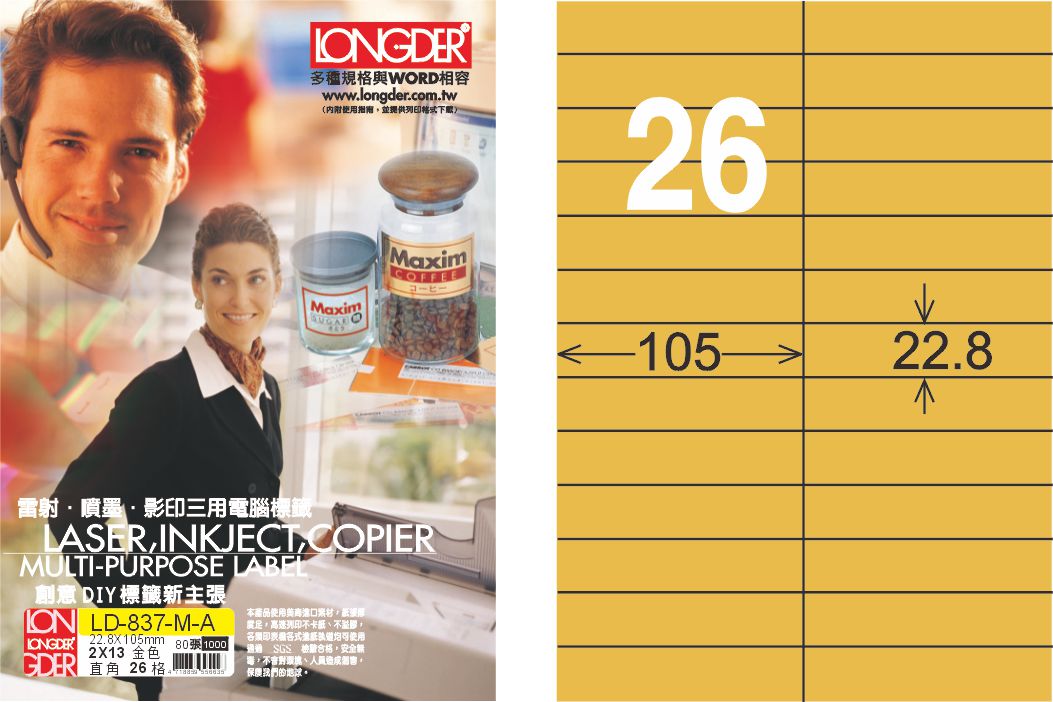 商品名稱:龍德 LD-837-M-A A4雷射影印標籤 金色 / 盒