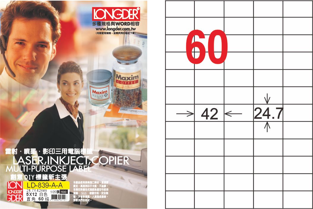 商品名稱:龍德 LD-839-A-A A4雷射影印標籤 白銅版 / 盒