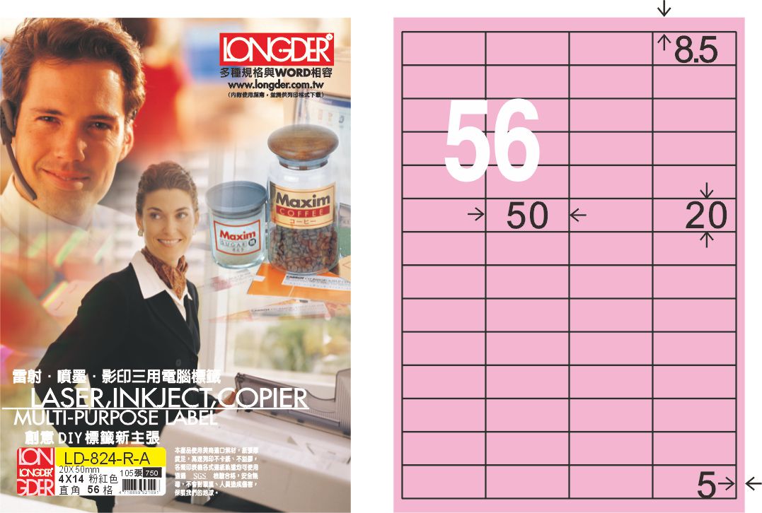 商品名稱:龍德 LD-824-R-A A4三用電腦標籤 粉紅色 / 盒