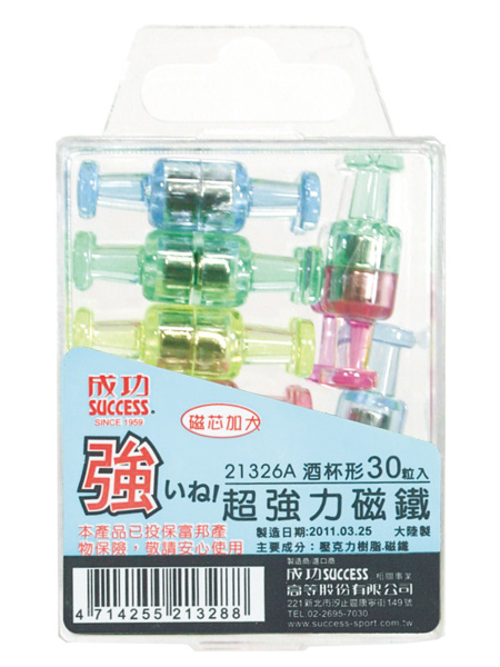 ◎品名:成功 SUCCESS 21326A 酒杯形超強力磁鐵(30入)