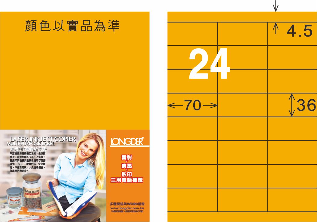商品名稱:龍德 LD-826-FO-C A4雷射影印標籤 螢光橘 / 包