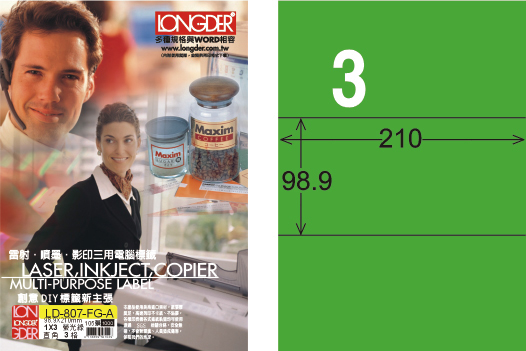 商品名稱:龍德 LD-807-FG-A A4雷射影印標籤 螢光綠 / 盒